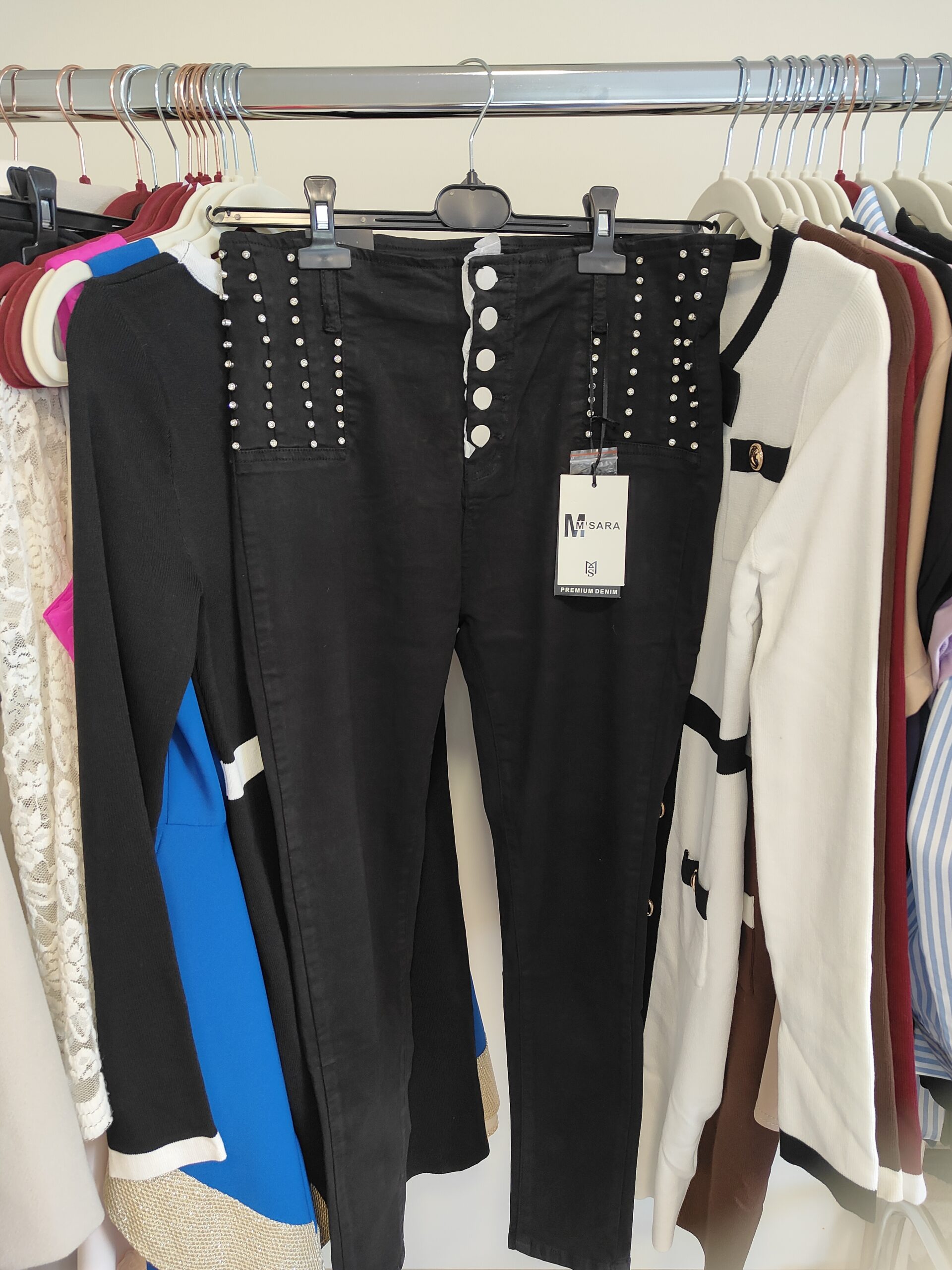 SPODNIE CZARNE Z ĆWIEKAMISPODNIE JEANSY CZARNE Z ĆWIEKAMI