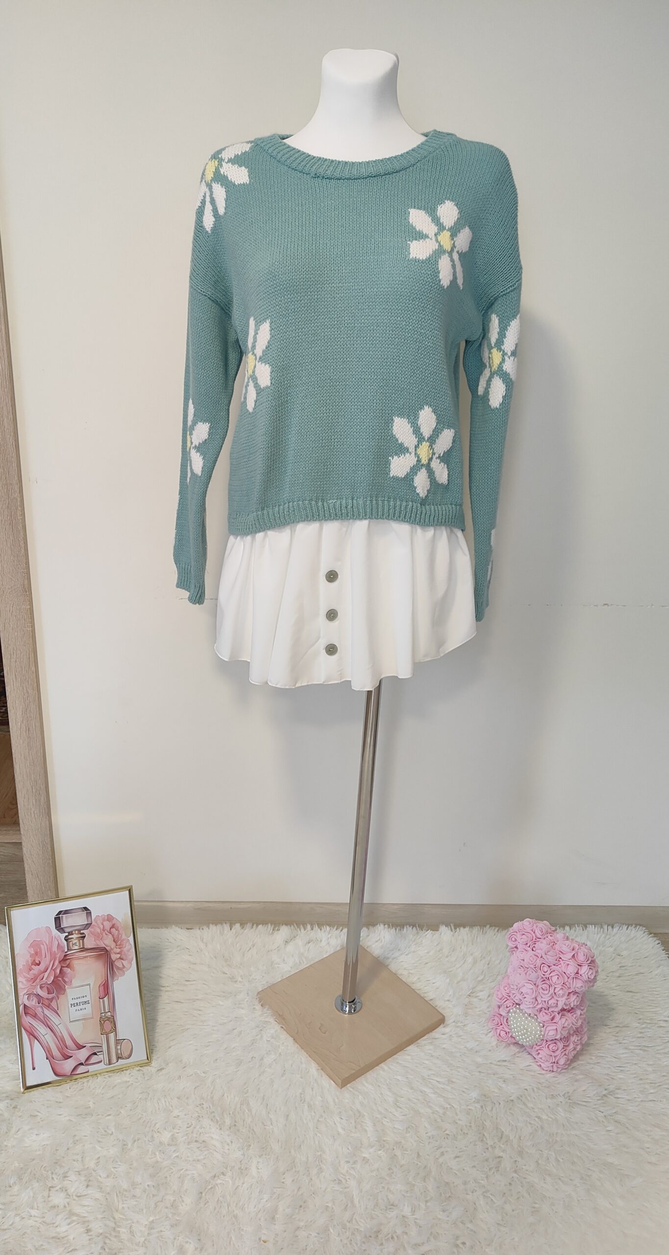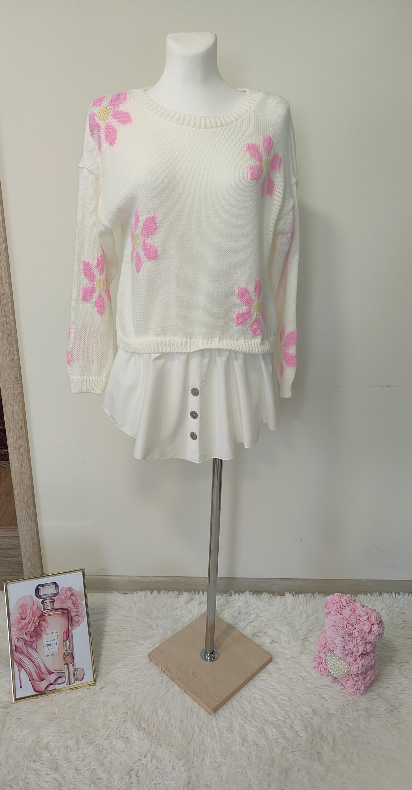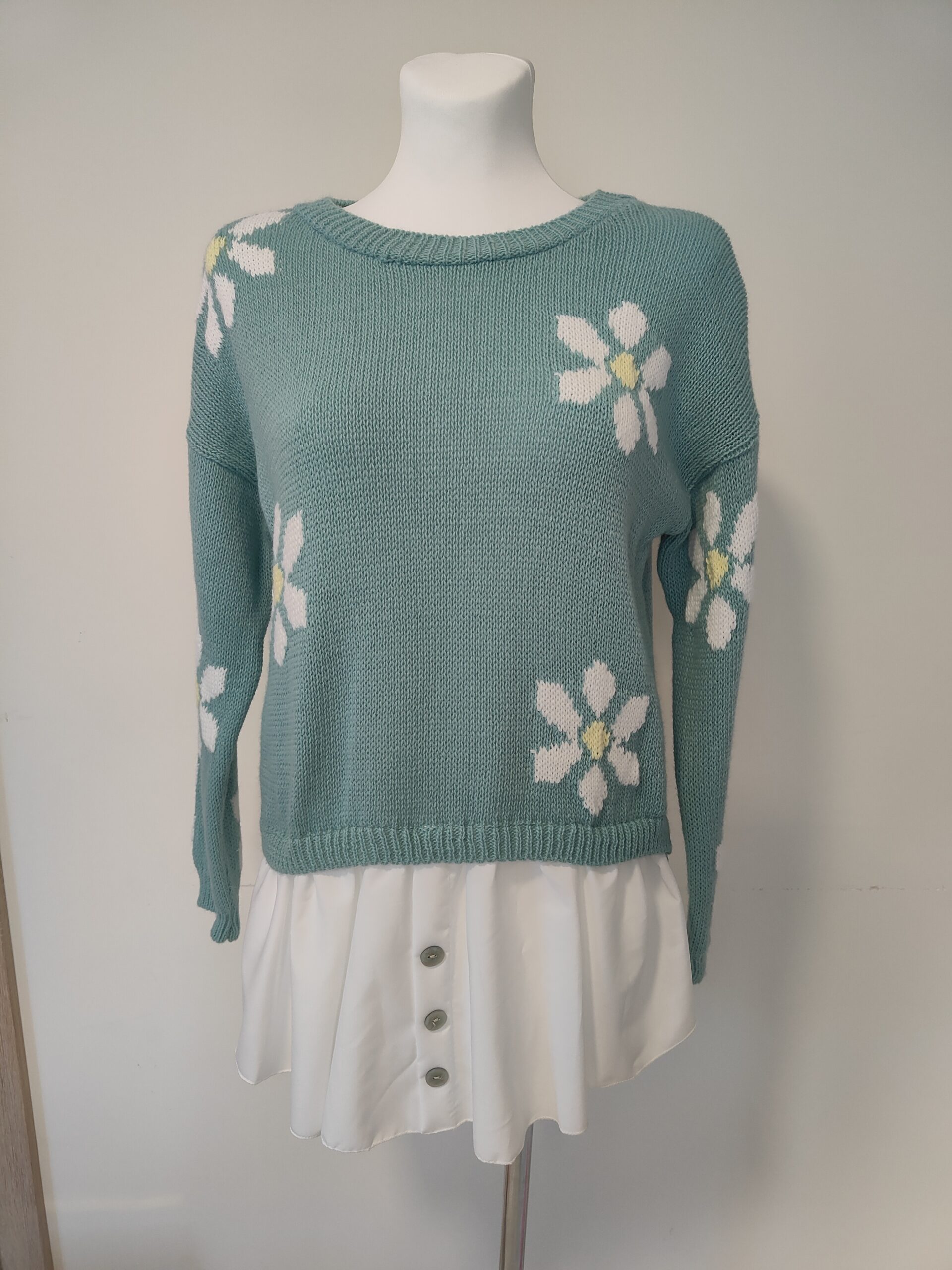 SWETER WŁOSKI Z DODATKIEM KWIATÓW I KOSZULI