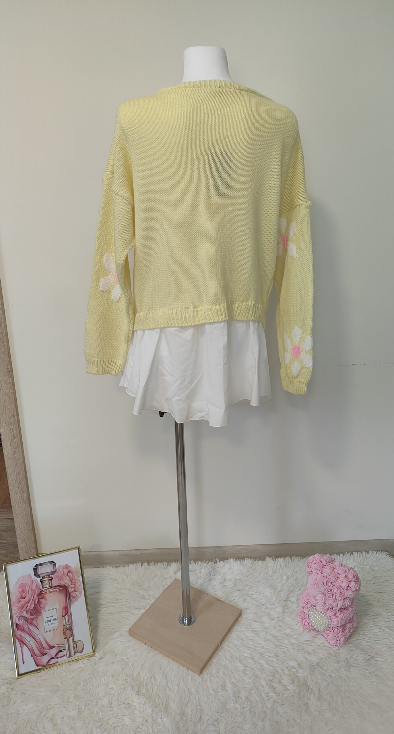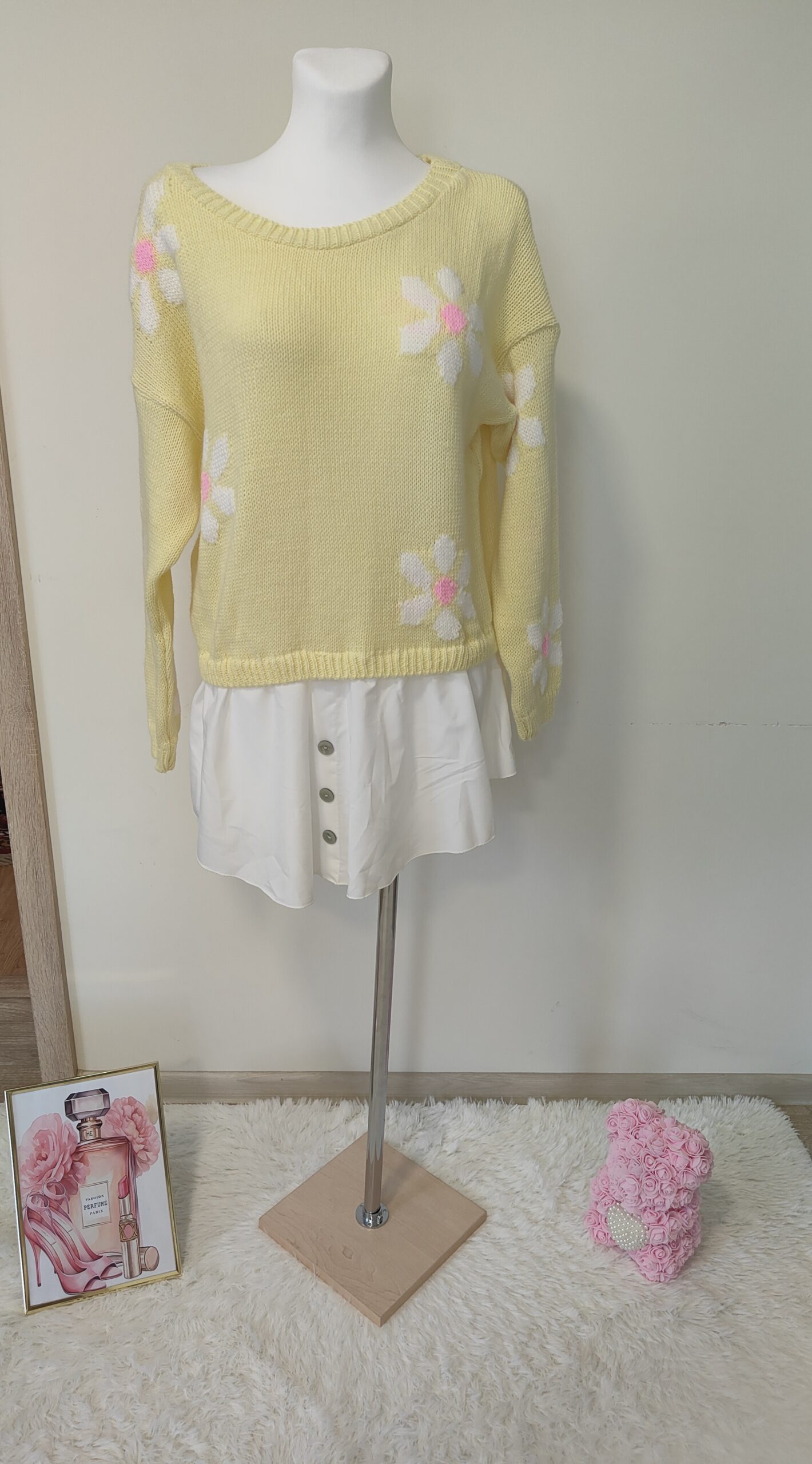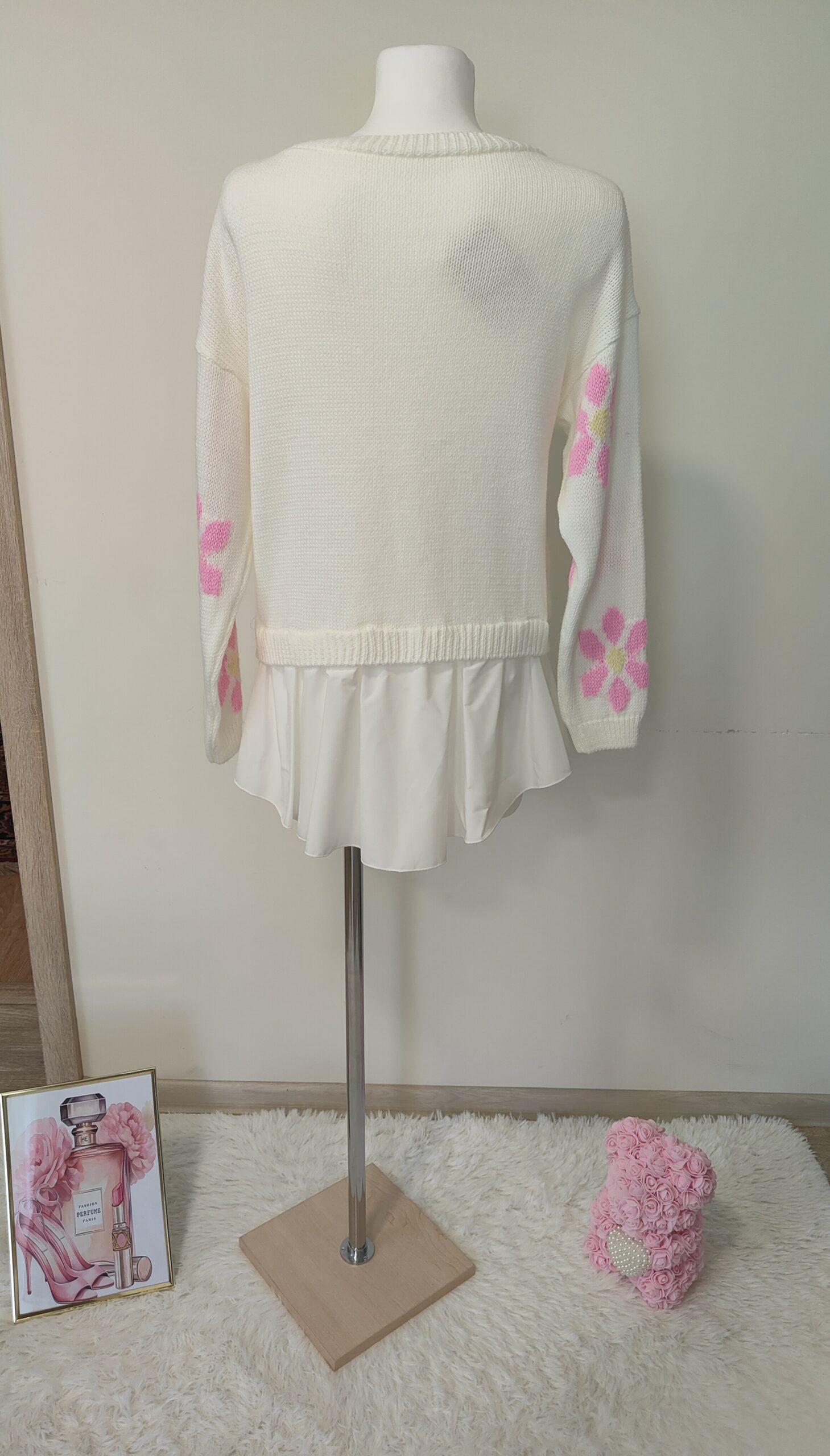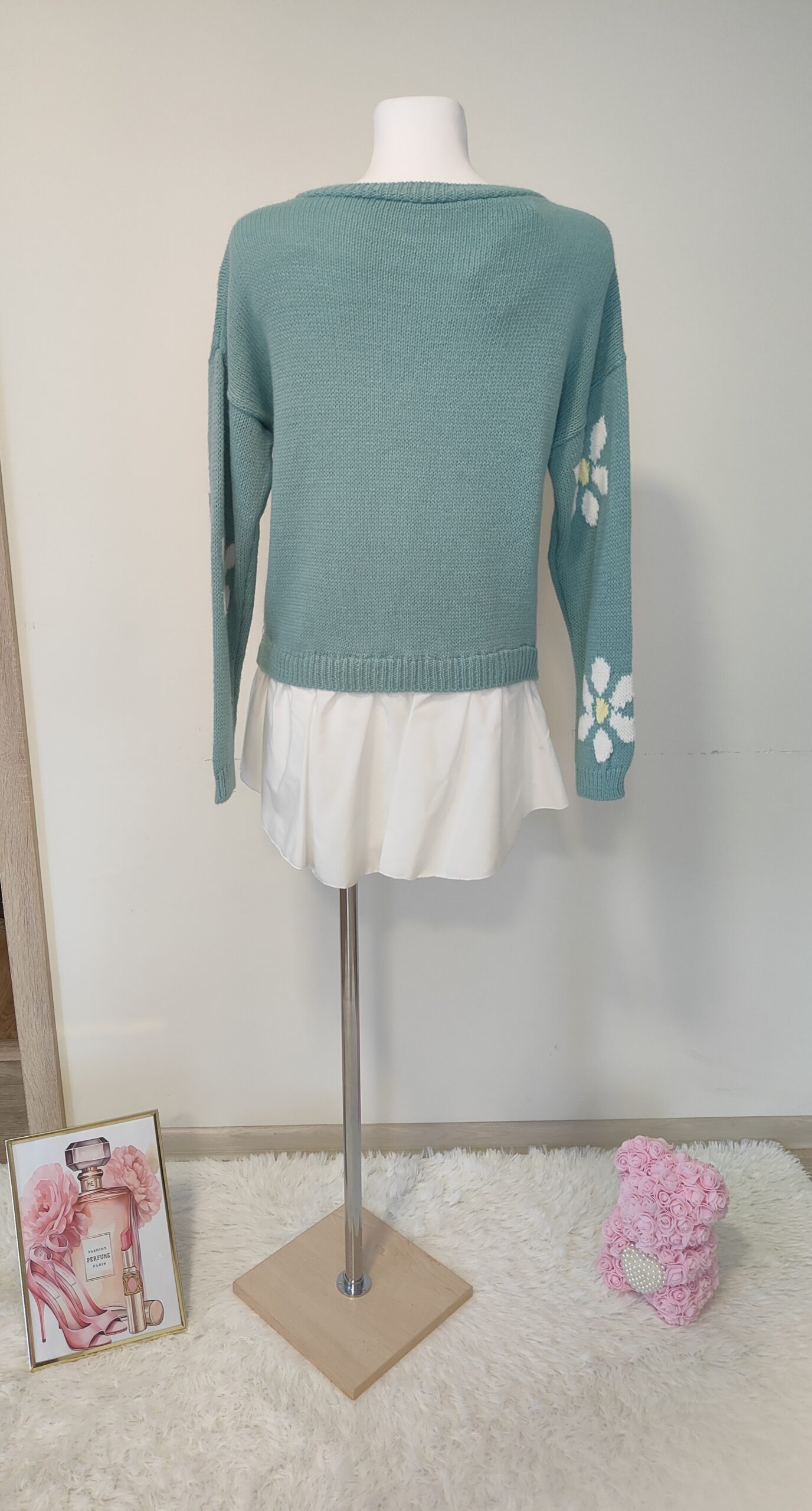 SWETER WŁOSKI Z DODATKIEM KWIATÓW I KOSZULI